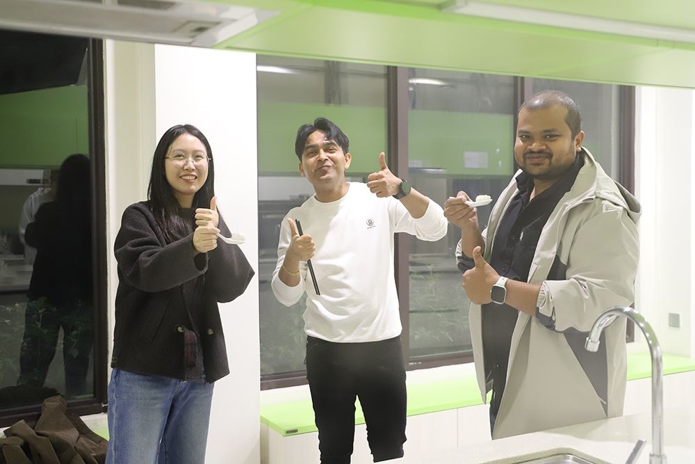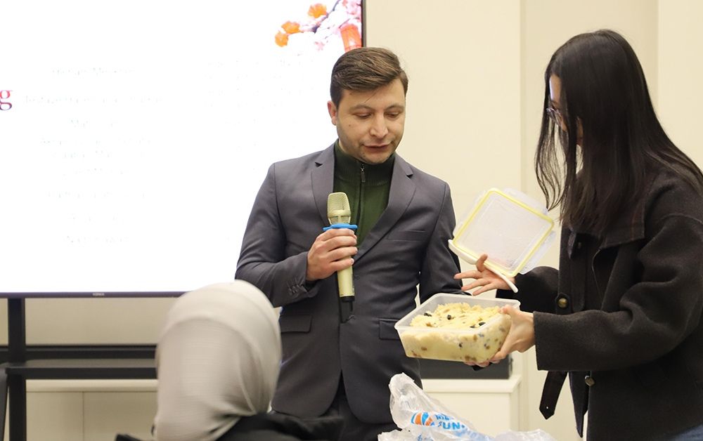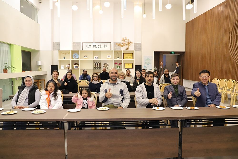 随后,主持人陈雨桐老师为大家介绍了冬至的文化习俗。她讲解道,冬至是中国传统节气中的重要节点,素有“冬至大如年”之说,民间在这一天常有吃汤圆、祭祖、数九等习俗,并介绍了猜灯谜以及投壶的规则和文化内涵,让外籍教师在动手体验之前,进一步理解这些活动背后的蕴含的中华优秀传统文化。来自巴基斯坦的博士后Mati Ullah、来自埃及的博士后Akram Ismael Shehata Shaaban Mahmoud还带来了家乡的特色点心与大家分享,为这场以“团圆”为主题的文化聚会增添了几分亲切感。
