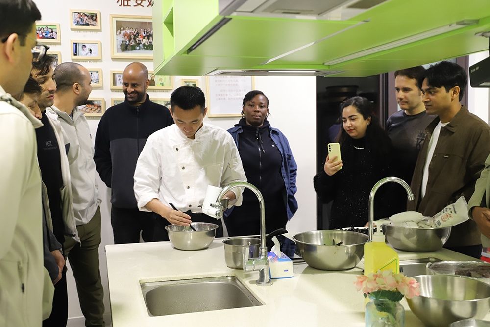 接着,教师们移步至淑德书院教学厨房,在专业厨师的指导下亲手制作汤圆。揉糯米粉、包馅料、搓成团……大家边学边做,笑声不断。许多教师是第一次尝试包汤圆,却做得有模有样,现场弥漫着浓浓的糯米香与团圆情。