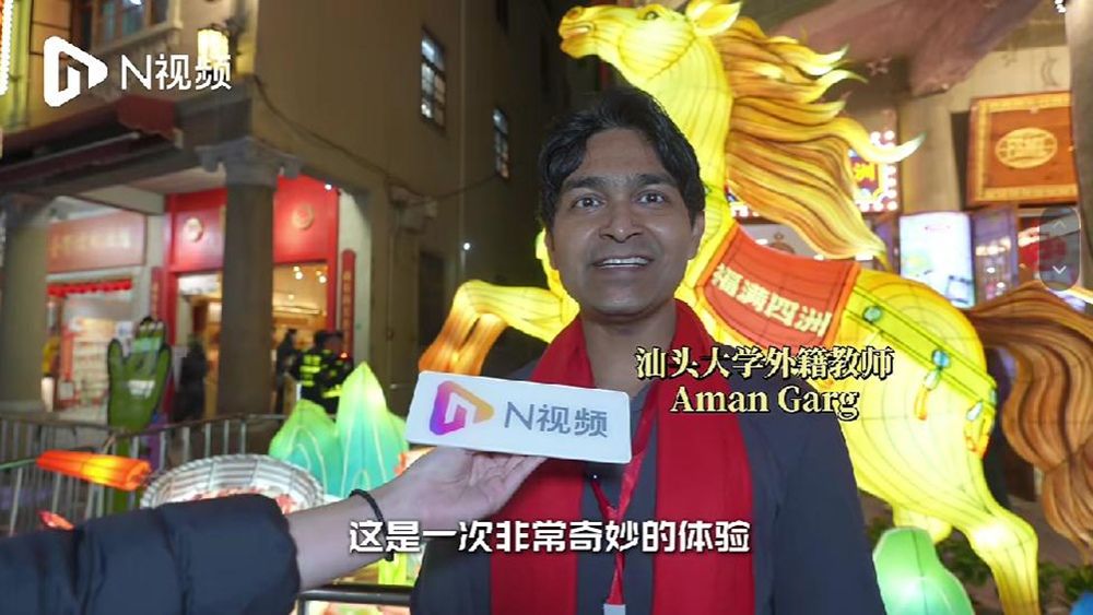 元宵添喜乐,灯影映侨情。元宵节当天,以“合想•马汕有好事”为主题的2026汕头小公园国际元宵灯会正式启幕。理学院印度籍教授Ashok Kumar Singhvi夫妻及工学院印度籍博士后Aman Garg等在国际交流合作处带领下前往小公园,沉浸式感受元宵氛围。灯会现场,流光溢彩,喜气洋洋。百年骑楼的南洋风情与丙午马年的花灯交相辉映,龙马舞、英歌舞、舞龙等民俗演出轮番上演,侨韵悠长的文化盛宴徐徐展开。Aman Garg被眼前的美景深深打动,他表示:“我觉得灯会非常美,是一次奇妙的体验,我会告诉所有人中国文化很棒,每个人一生中都应该至少来一次中国,感受这里的文化。”Ashok教授的妻子Anita Singhvi也难掩兴奋:“我来汕头后一直都想来这边的老城区逛一逛,这里的骑楼很有特色,这次行程让我非常享受。”Ashok教授则分享了自己的感受,他发现中国和印度文化有很多相似之处,比如英歌舞的表演形式就与印度部分传统舞蹈有着异曲同工之妙。“自从1992年以来,我已经来过中国20多次了,每一次都能感受到中国新的进步,我着迷于中国及中国的发展进程。”